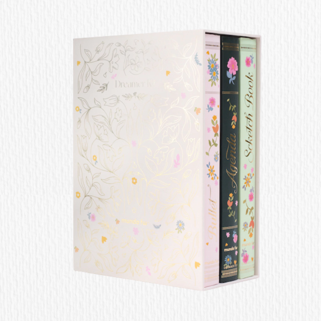Descubrí el AGENDA FW 2026 DREAMER KIT, un conjunto único que combina funcionalidad y creatividad. Este kit incluye tres cuadernos esenciales: una agenda perpetua para planificar sin límites, un bullet journal para organizar tus ideas y un sketchbook para que tu imaginación no tenga fin. Todo viene presentado en una caja con diseño soñado, perfecta para inspirarte cada día. Ideal para quienes buscan orden y expresión artística en un solo lugar. ¡Nunca viste algo igual! ✨