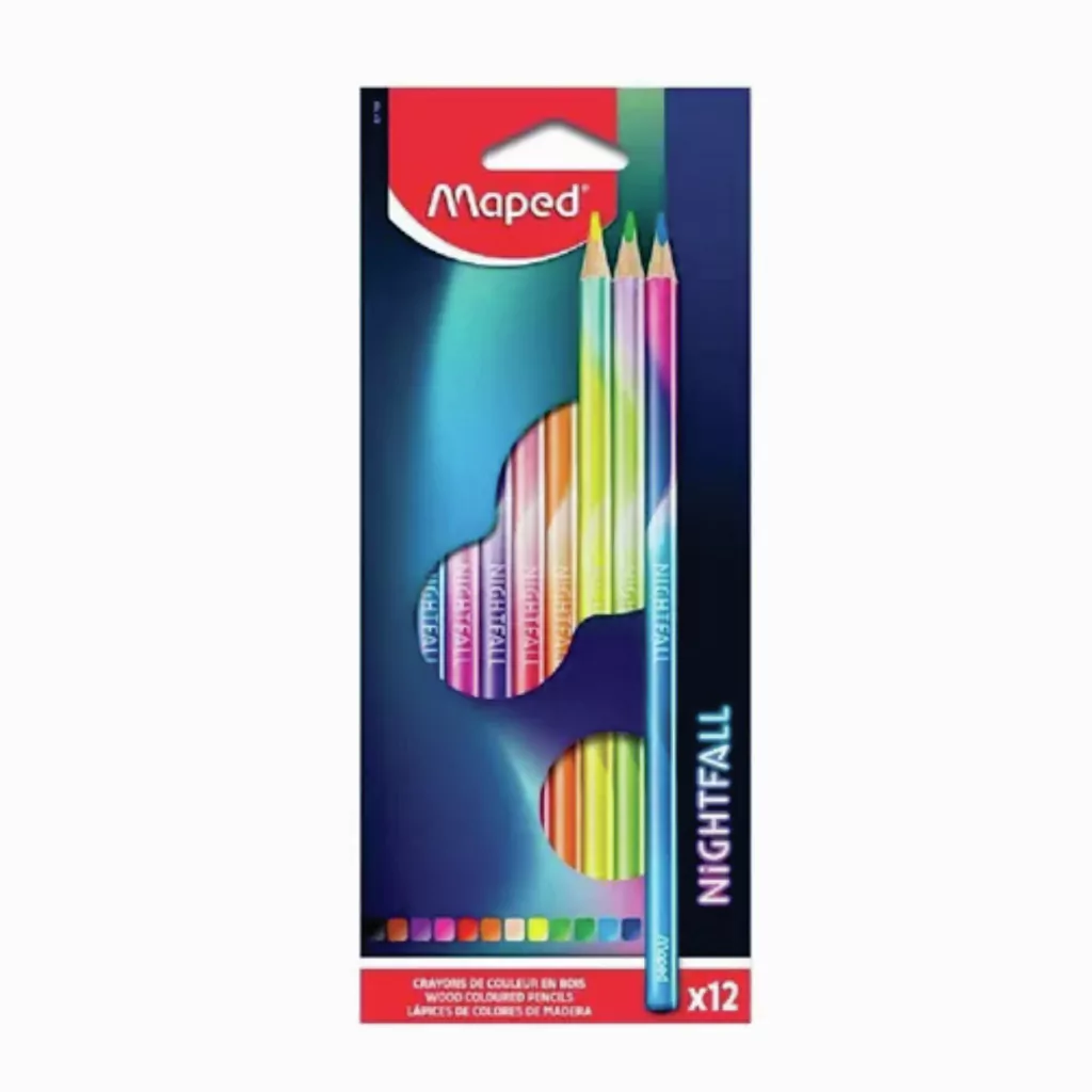 Una hermosa paleta de colores para deleitar a niños y adolescentes. Los lápices de colores Nightfall tienen una mina suave y resistente. Son fáciles de afilar para un uso diario cómodo y agradable. Tienen una punta pintada para un acabado de alta calidad. Tienen una forma triangular específica que los hace fáciles de agarrar. Los lápices cumplen con las normas de juguetes para un uso seguro.